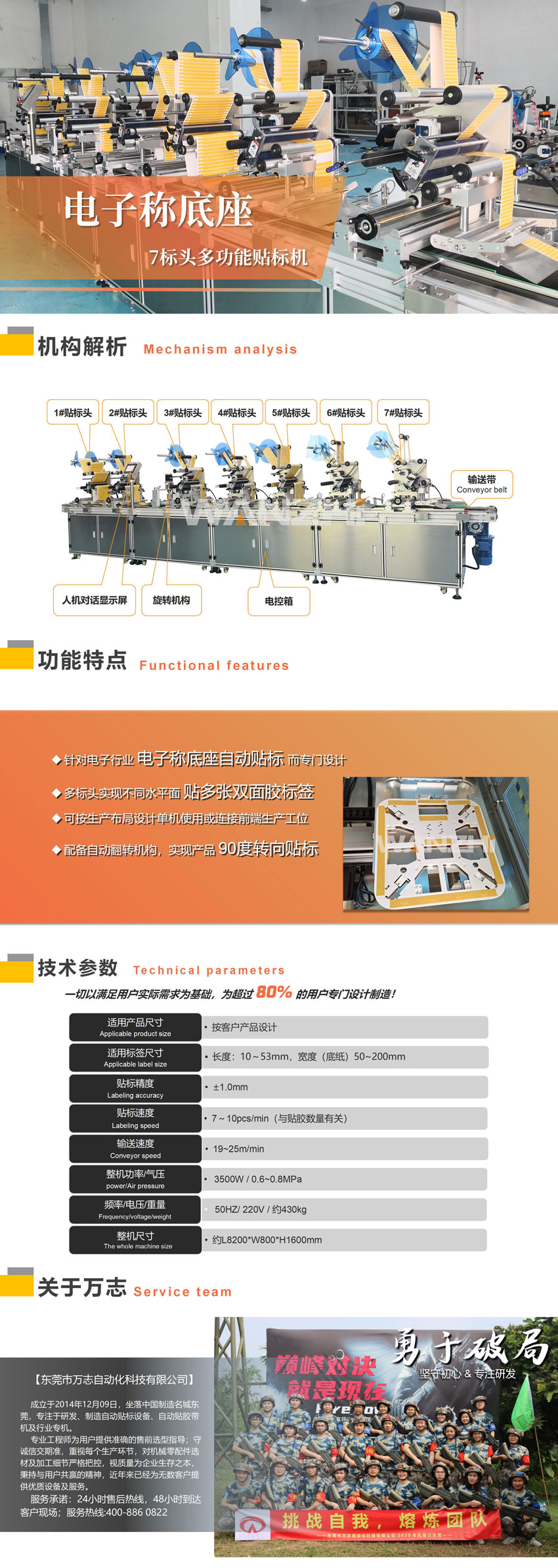 專用于電子稱底座表面貼標/3M膠標簽,配置7個標頭,含自動旋轉角度功能實現在不同位置貼多條膠的功能;