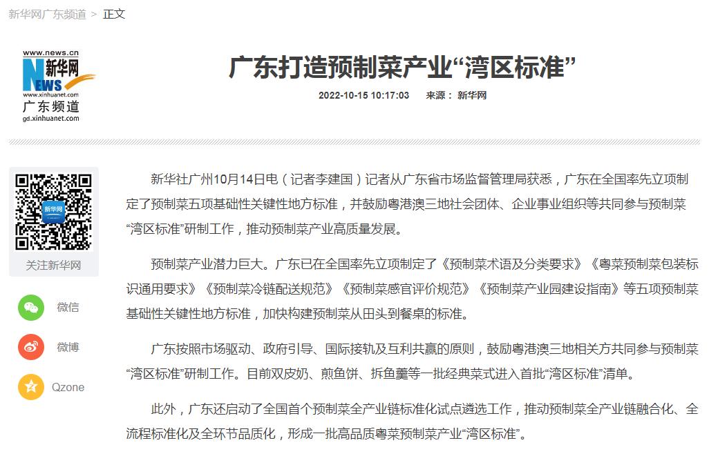 圖1:《廣東打造預(yù)制菜產(chǎn)業(yè)“灣區(qū)標(biāo)準(zhǔn)”》新聞報(bào)道來源
