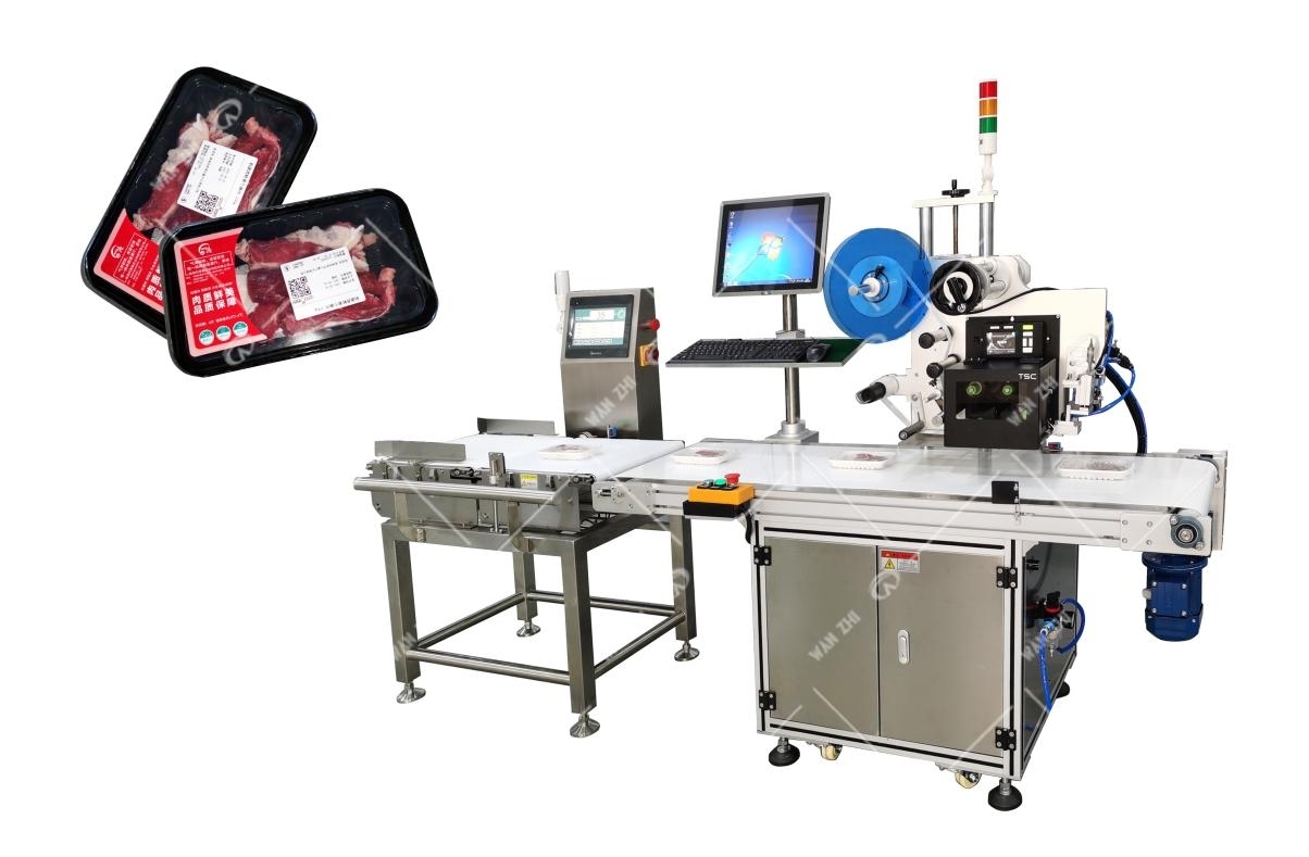 適應(yīng)于不同高度(厚度)的包裝盒/袋自動(dòng)稱重貼標(biāo), 前端可連接包裝機(jī)、包膜機(jī),稱重后信息即時(shí)傳輸?shù)酱蛴∠到y(tǒng)生成內(nèi)容后在對應(yīng)的產(chǎn)品或包裝上實(shí)時(shí)貼標(biāo),采用先進(jìn)無接觸吹貼式貼標(biāo),一分鐘最高可貼50Psc,打印模板可編輯,方便生產(chǎn)管理信息溯源,實(shí)現(xiàn)流水線無人化作業(yè)。
