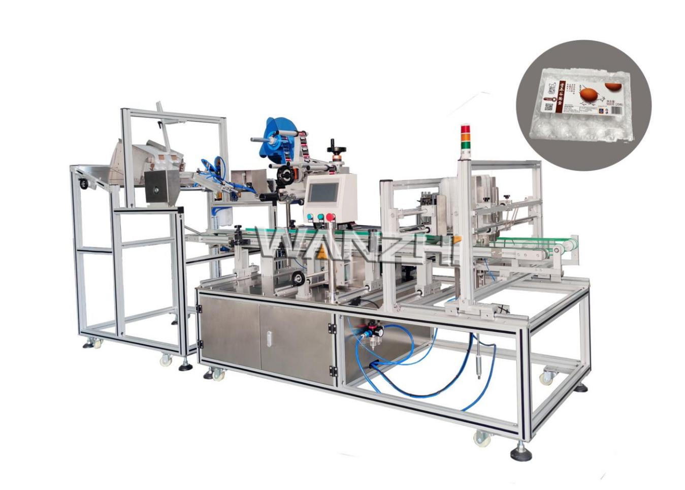適用于吸塑包裝盒表面貼標(biāo),如水果盒、雞蛋盒等;機(jī)械手自動(dòng)取盒送到輸送上進(jìn)行貼標(biāo)后自動(dòng)收集產(chǎn)品,性能穩(wěn)定生產(chǎn)效率1200~2300件/小時(shí);可單機(jī)使用,也可與前端注塑機(jī)連接使用。