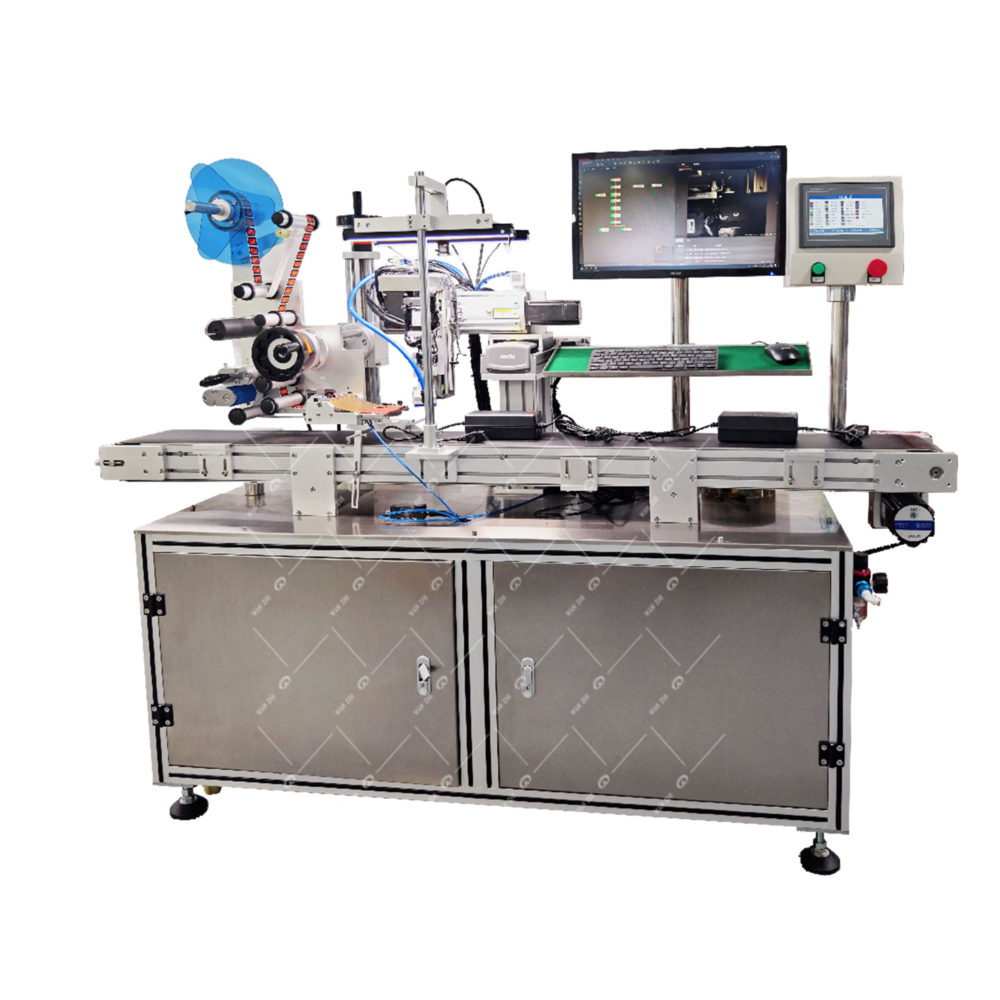 萬(wàn)志CCD視覺(jué)貼標(biāo)機(jī)適用于在不規(guī)則或要求高精密度貼合標(biāo)簽的產(chǎn)品;通過(guò)使用先進(jìn)的視覺(jué)識(shí)別技術(shù)和精密的機(jī)械操作,相機(jī)系統(tǒng)對(duì)產(chǎn)品進(jìn)行拍照,根據(jù)預(yù)設(shè)的算法,自動(dòng)判斷產(chǎn)品表面的形狀和大小,根據(jù)標(biāo)簽設(shè)計(jì)進(jìn)行定位、縮放和旋轉(zhuǎn)貼附標(biāo)簽到對(duì)應(yīng)的位置,采用的工業(yè)相機(jī)覆蓋30萬(wàn)到1.51億像素,其貼標(biāo)精度最高可達(dá)到0.1毫米。